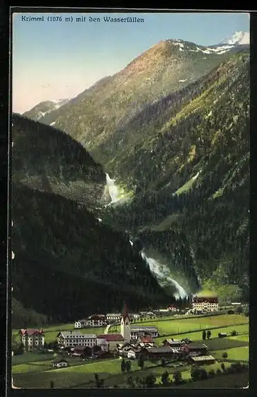 AK Krimml, Ortsansicht mit den Wasserfällen