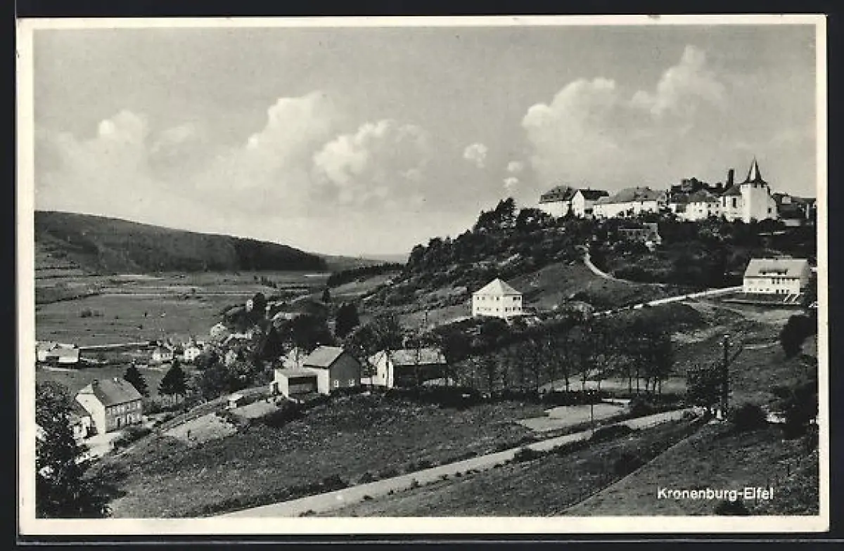 AK Kronenburg /Eifel, Ortsansicht mit Pension und Gasthof Zur Kyllterrasse, Inh. Jos. Sozas