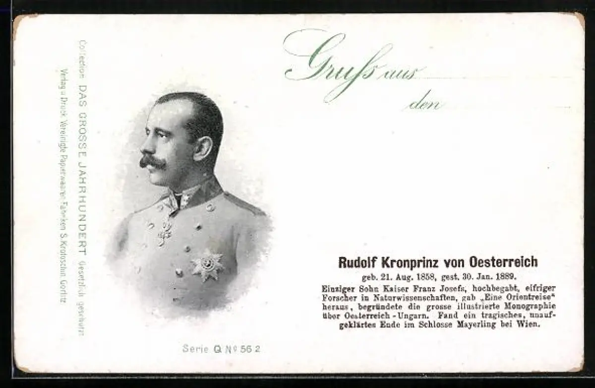 AK Kronprinz Rudolf von Österreich, geb. 21.8.1858, gest. 30.1.1889, Einziger Sohn Kaiser Franz Josefs I.