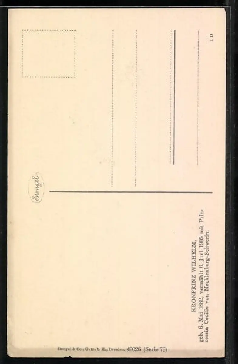 AK Kronprinz Wilhelm von Preussen, Geb. 1882, Vermählt 1905 mit Prinzessin Cecilie von Mecklenburg-Schwerin