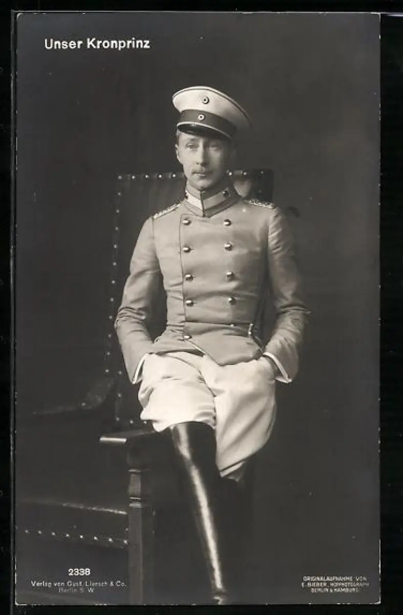 AK Kronprinz Wilhelm von Preussen in Uniform in salopper Pose auf einem Sessel