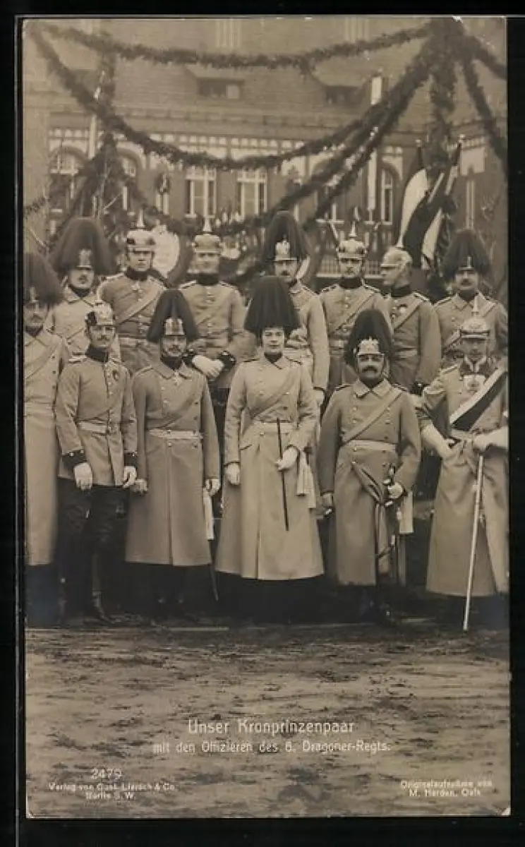 AK Kronprinzenpaar mit den Offizieren des 8. Dragoner-Regts., Kronprinzessin Cecilie