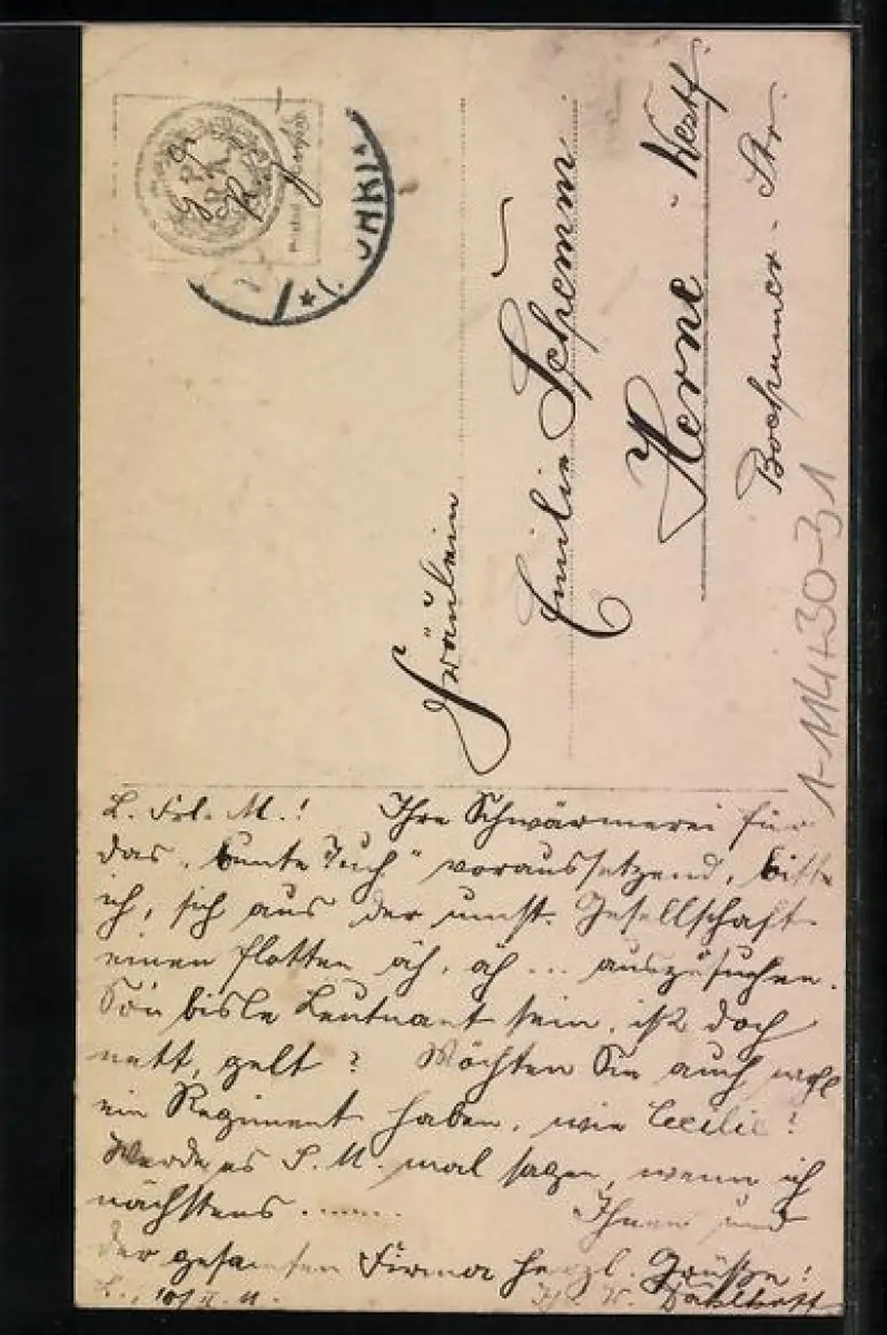 alte Ansichtskarte, gelaufen, Briefmarke entfernt, Bugspur oben mittig, guter Zustand