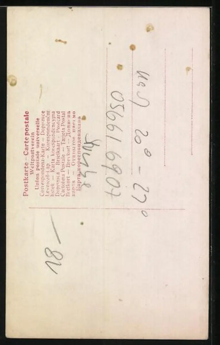 alte Ansichtskarte, ungelaufen, rückseitig Klebe- und Papierreste, guter Zustand