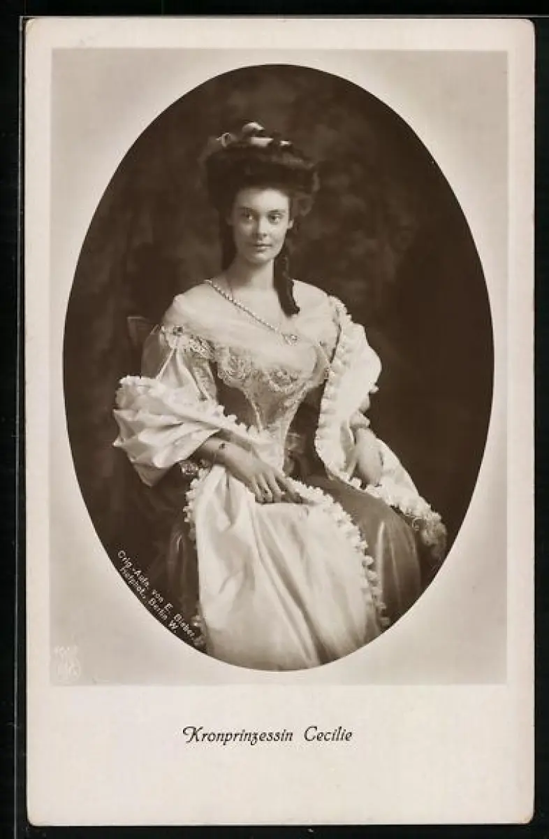 AK Kronprinzessin Cecilie, in einem festlichen Abendkleid gesehen