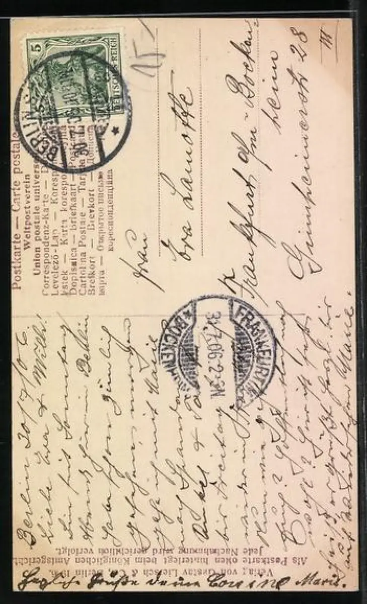alte Ansichtskarte, gelaufen 1906, Eckknick re. oben, Abriebspur re. oben, Bugspur re. oben, guter Zustand