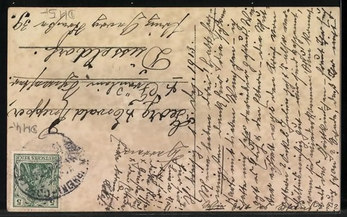 alte Ansichtskarte, gelaufen 1913, Eckknicke unten, guter Zustand