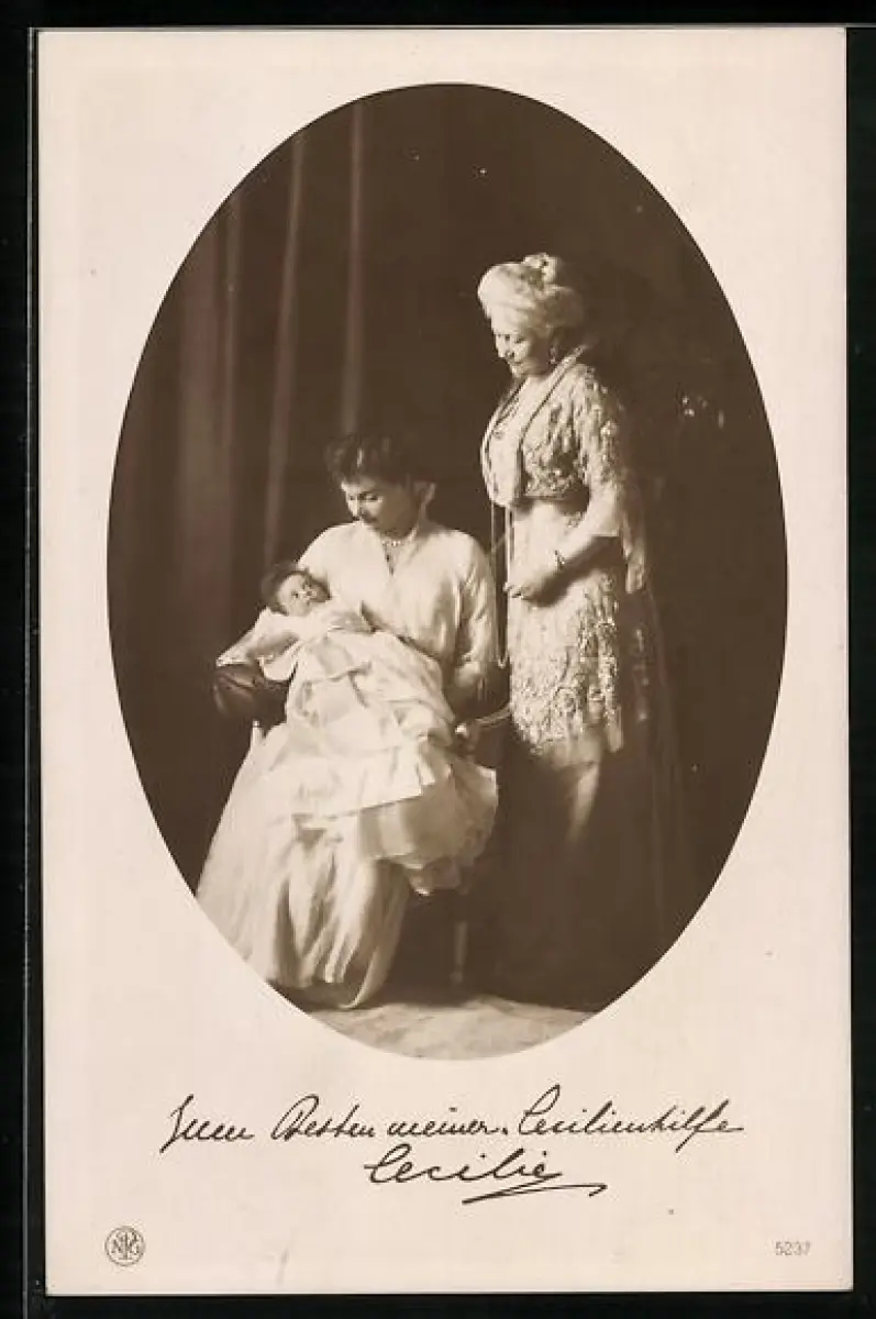 AK Kronprinzessin Cecilie von Preussen hält ihr Kind im Arm nebst Kaiserin Auguste Viktoria von Preussen im schönen Kleid