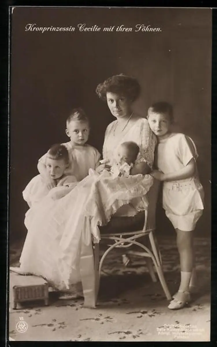 AK Kronprinzessin Cecilie von Preussen mit den vier Söhnen