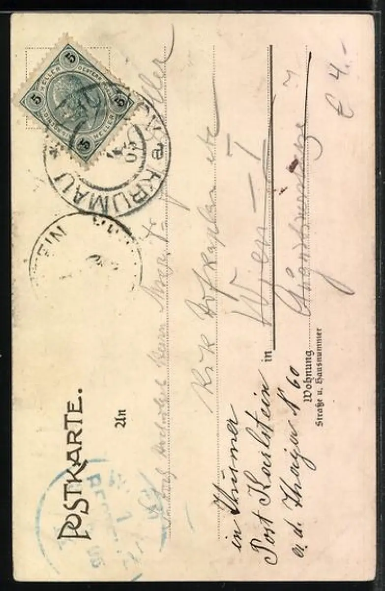 alte Ansichtskarte, gelaufen 1905, Eckknick rechts unten, guter Zustand