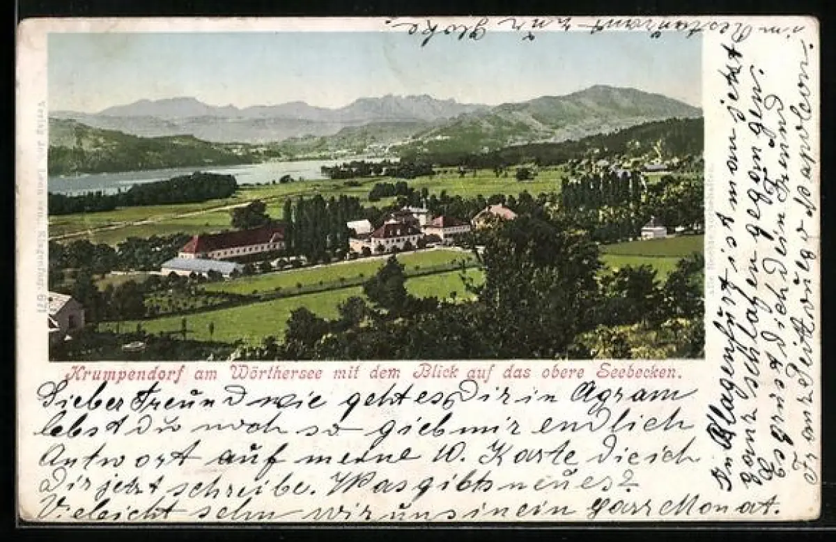 AK Krumpendorf am Wörthersee, Ort mit Blick auf das obere Seebecken