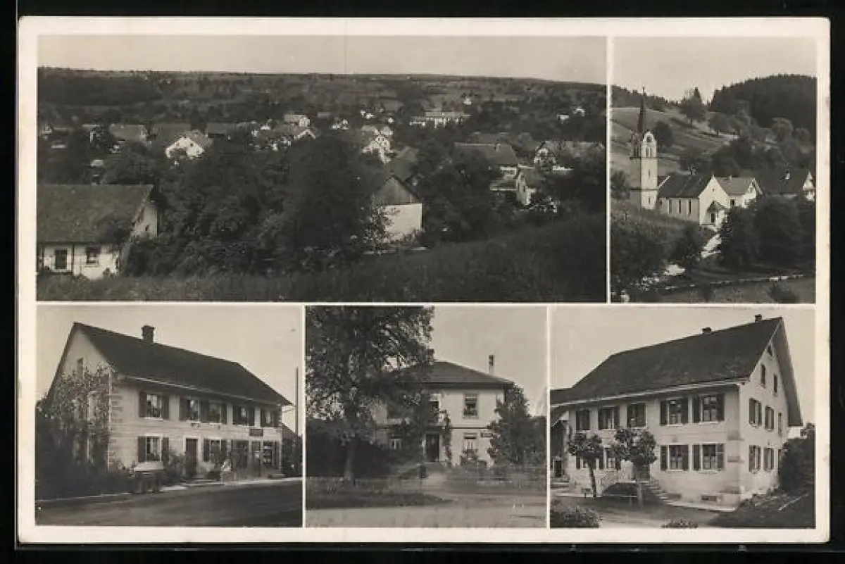 AK Künten, Gesamtansicht, Blick zur Kirche, Strassenpartie