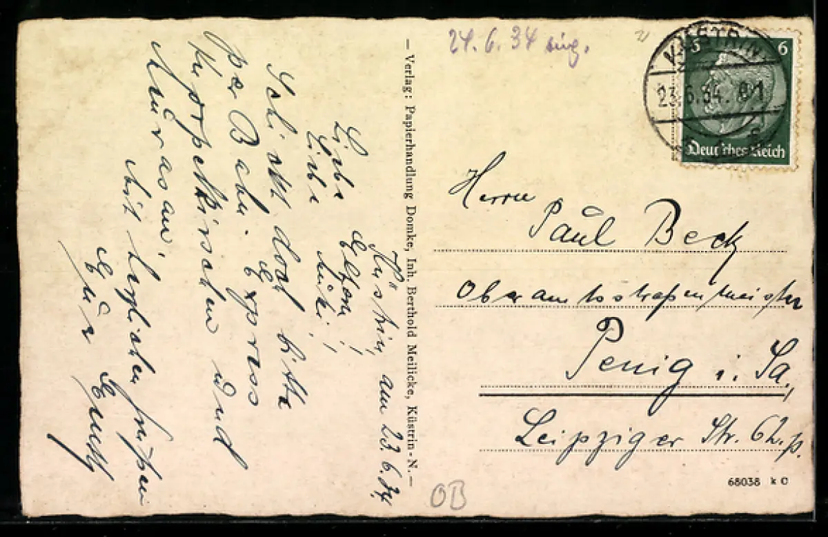 alte Ansichtskarte, gelaufen 1934, Stempelspur, guter Zustand
