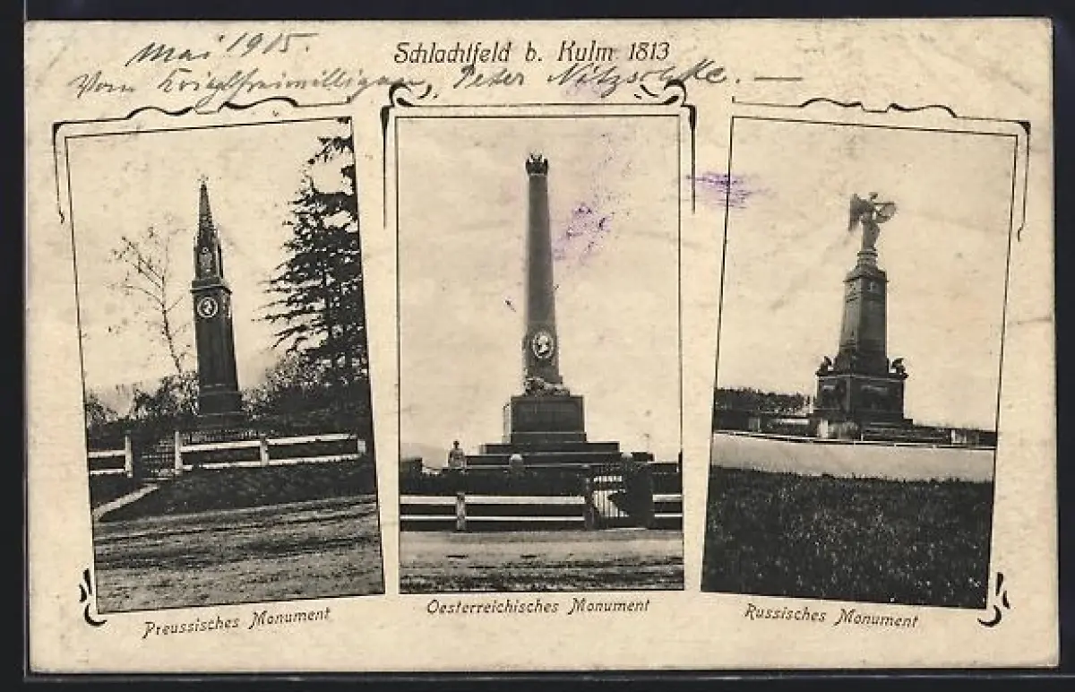 AK Kulm, Schlachtfeld 1913, Preussisches Monument, Oesterreichisches Monument, Russisches Monument