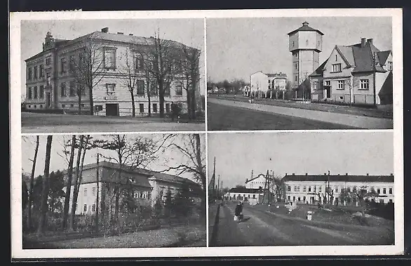 AK Kuncice n. Orlici, Strassenpartie mit Turm, Gebäudeansichten