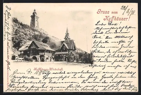 AK Kyffhäuser, Kyffhäuser-Gasthaus mit Denkmal