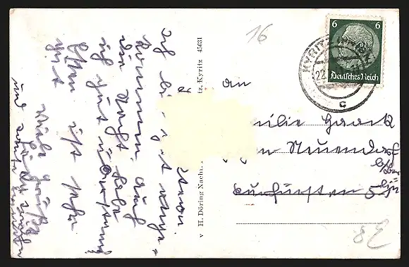 alte Ansichtskarte, gelaufen, rückseitig Klebe- und Papierreste, guter Zustand