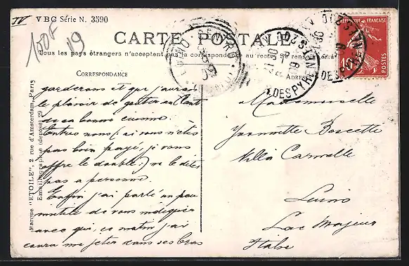 gelaufen 1909, Eckknick re. unten, Stempelspur, guter Zustand