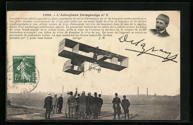 AK L`Aéroplane Delagrange no. 3 Doppeldecker-Flugzeug