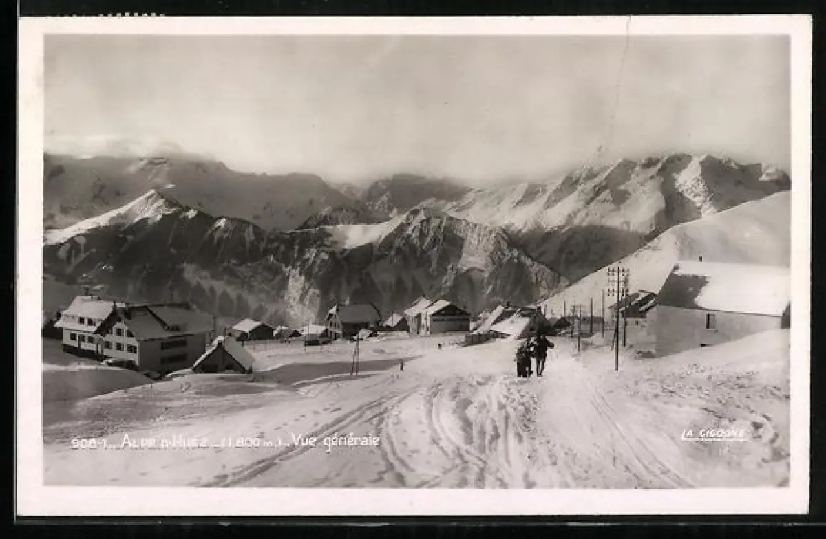 AK L`Alpe d`Huez, Vue générale des montagnes enneigées et du village en hiver