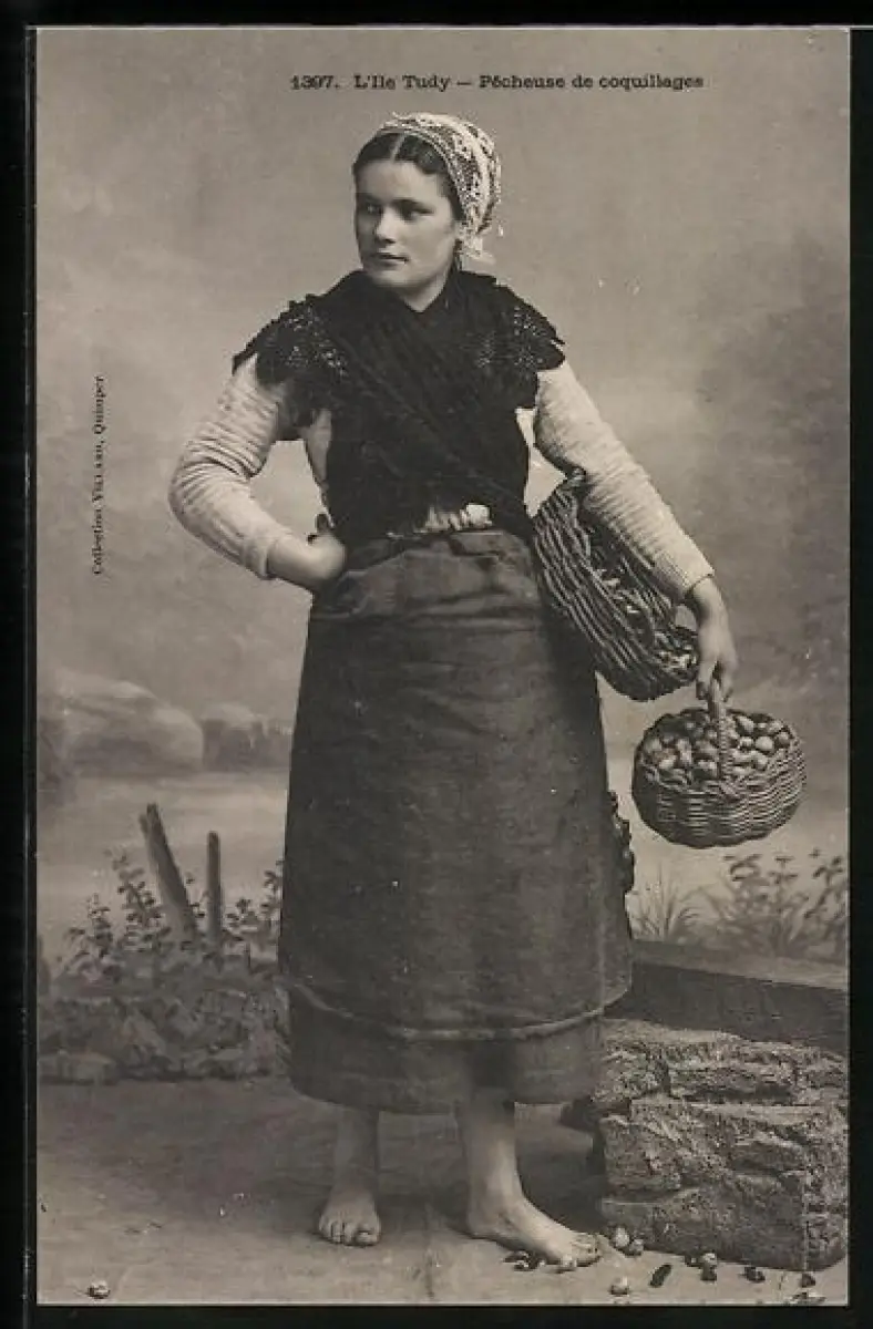 AK L`Ile Tudy, Pecheuse de Coquillages, Frau in Tracht