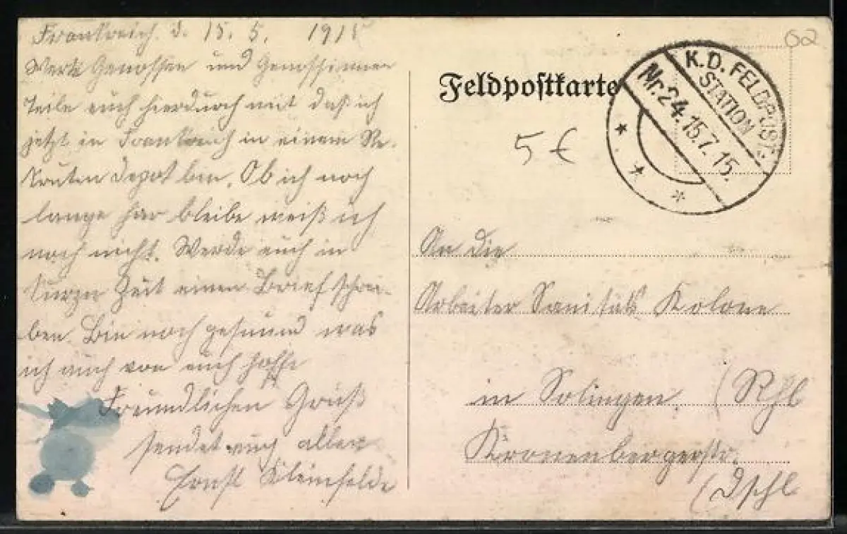 gelaufen 1915, guter Zustand
