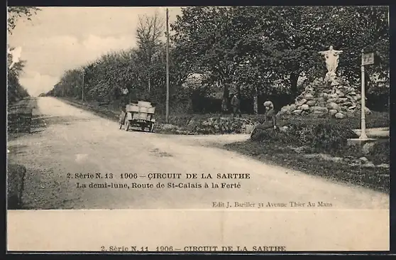 AK La Ferté, Circuit de la Sarthe 1906 /Autorennen, La demi-lune, Route de St-Calais a la Ferté