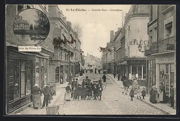 AK La Flèche, Grande Rue, Carrefour, Chateau de Rives-Sarthe