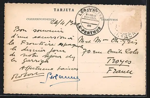 alte Ansichtskarte, gelaufen, Briefmarke entfernt, guter Zustand