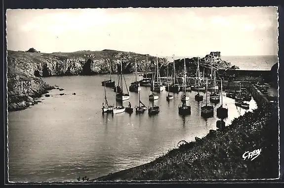 AK La Meule /Ile d`Yeu, Port, Vue des bateaux dans la baie rocheuse