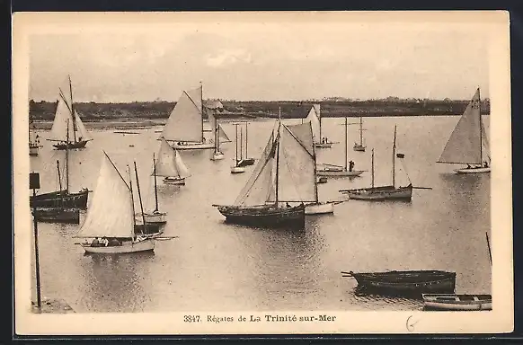 AK La Trinité-sur-Mer, Régates sur le port avec voiliers naviguant