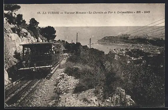 AK La Turbie, Vue sur Monaco, Le Chemin de Fer à Crémaillère, Bergbahn