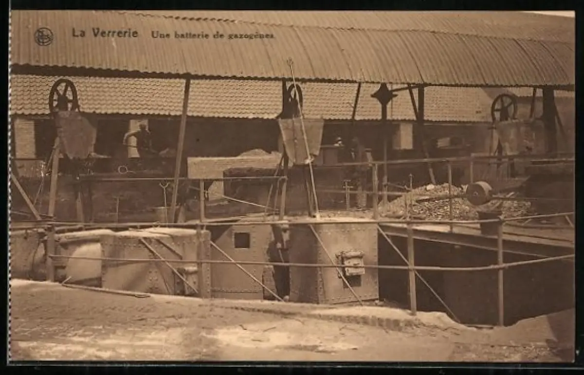 AK La Verriere, Une batterie de gazogènes, Gastanks der Glasfabrik