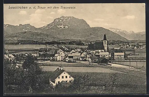 AK Laakirchen a. d. Traun, Ortsansicht mit dem Traunstein