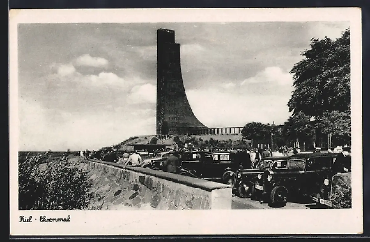 AK Laboe, Marine-Ehrenmal mit Besuchern