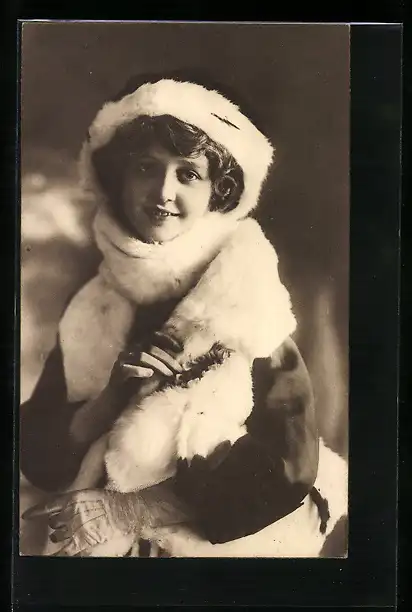 AK Lächelnde Dame in weissem Pelz
