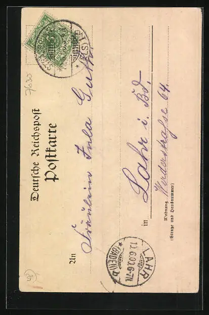 alte Ansichtskarte, gelaufen 1900, Bugspur li. unten, minimale Einrisse re., guter Zustand