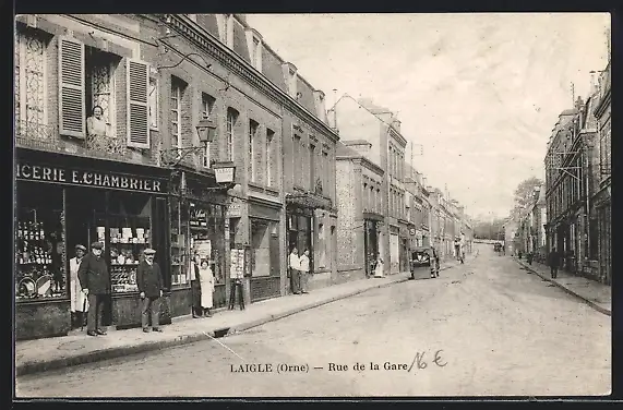 AK Laigle, Rue de la Gare, Strassenpartie