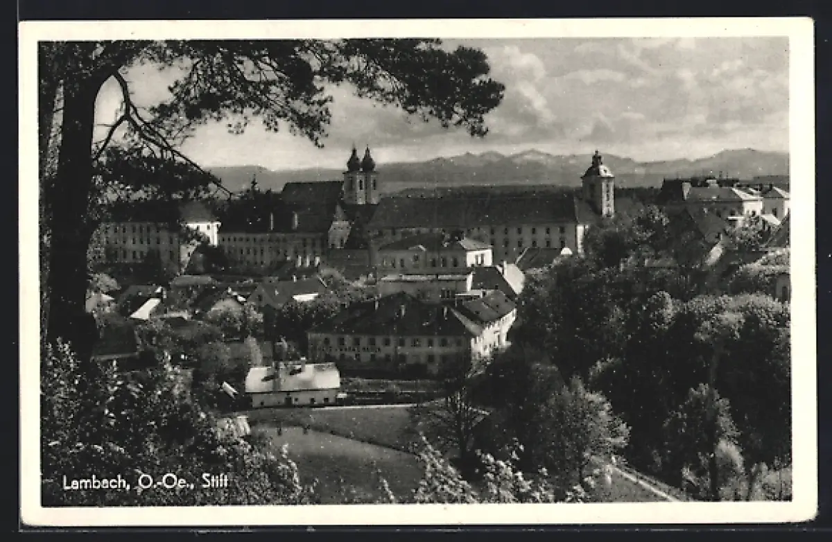 AK Lambach /O.-Oe., Blick auf den Stift aus der Vogelschau