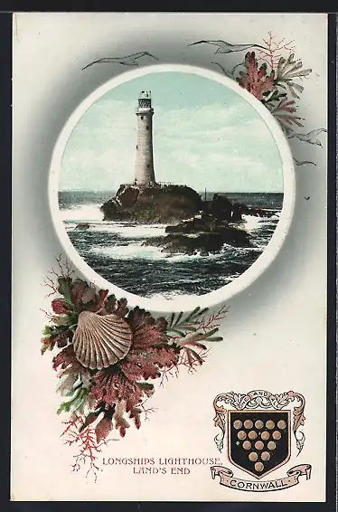 AK Land`s End, Longships Lighthouse, Cornwall-Wappen, Leuchtturm