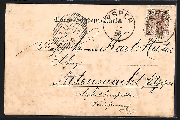 alte Ansichtskarte, gelaufen 1898, guter Zustand