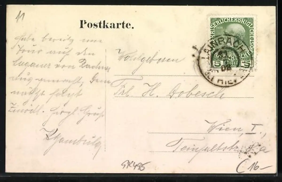 alte Ansichtskarte, gelaufen 1908, Stempelspur, guter Zustand