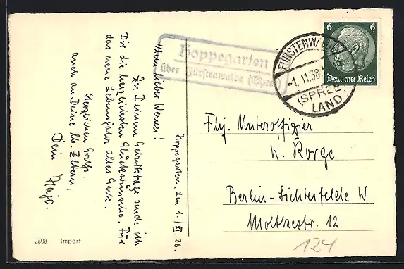 AK Landpoststempel Hoppegarten über Fürstenwalde /Spree