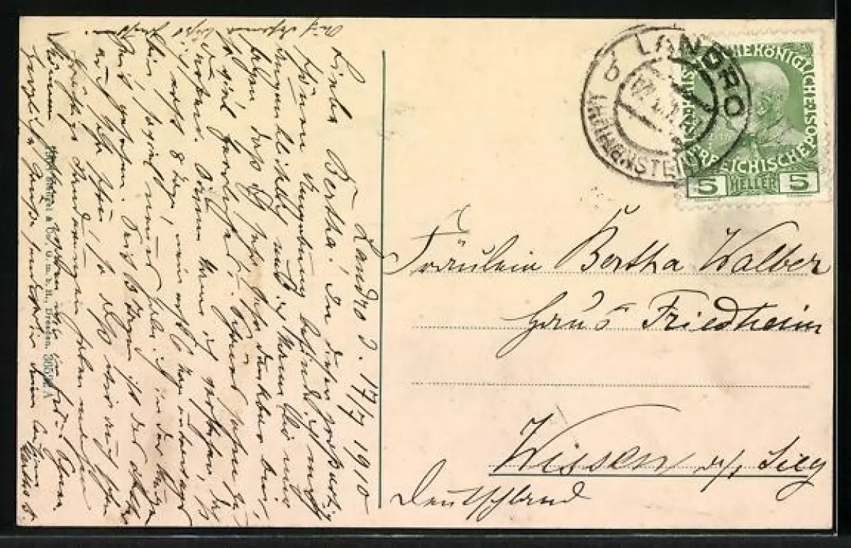gelaufen 1910, Stempelspur, guter Zustand