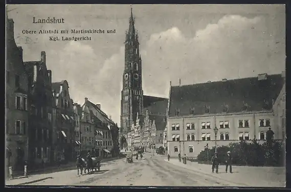 AK Landshut / Isar, Obere Altstadt mit Marienkirche und Kgl. Landgericht