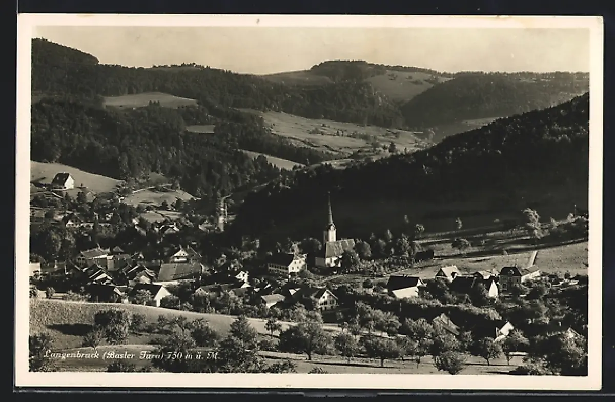 AK Langenbruck /Basler Jura, Gesamtansicht mit Waldhintergrund