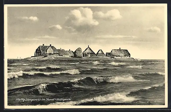 AK Langeness, Blick auf die Hallig im Sturm, Hilligenlei