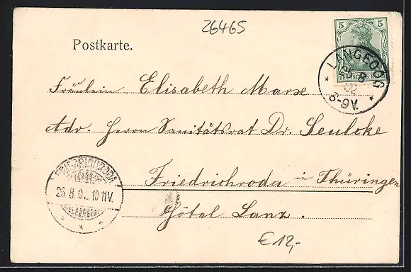 alte Ansichtskarte, gelaufen 1902, Eckknick re. unten, guter Zustand