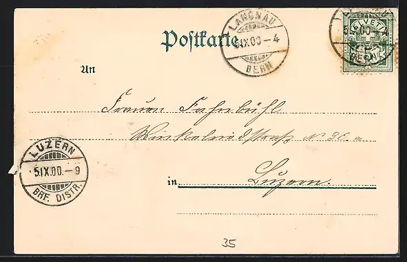 alte Ansichtskarte, gelaufen 1900, minimaler Einriss re. mittig, guter Zustand