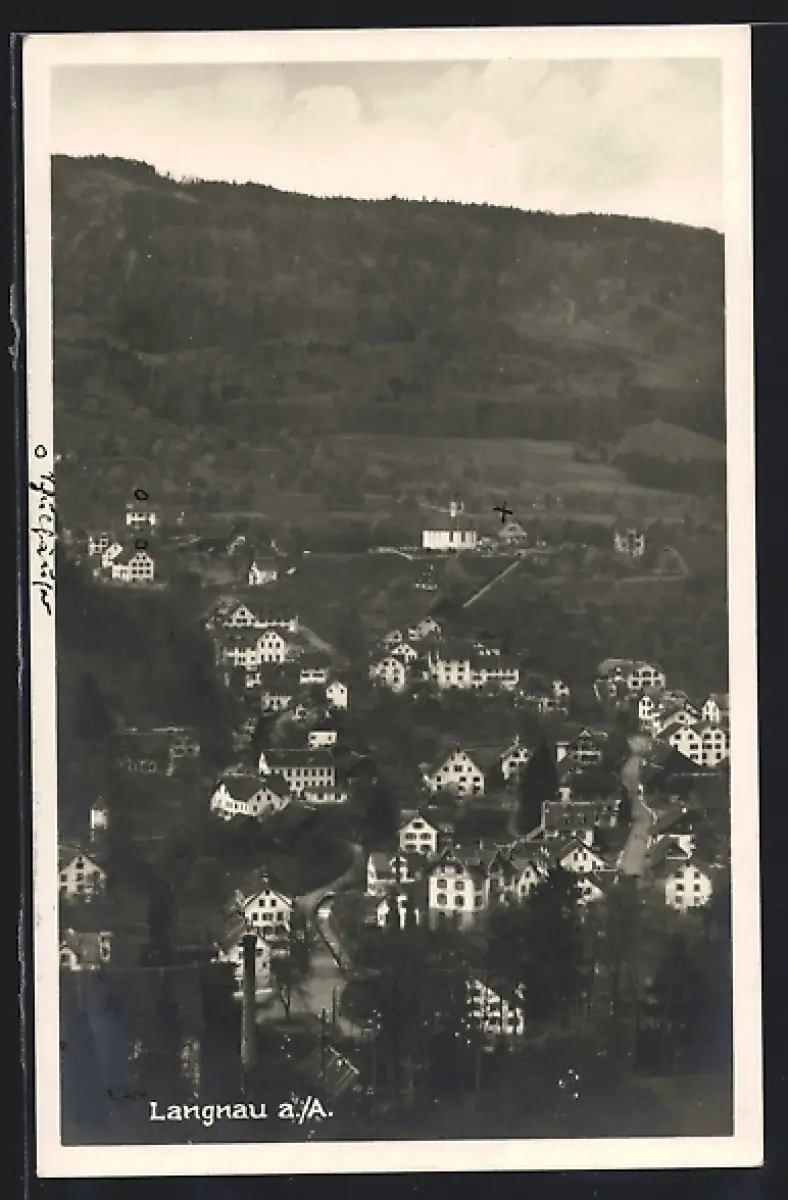 AK Langnau a. A., Totalansicht mit Strasse aus der Vogelschau